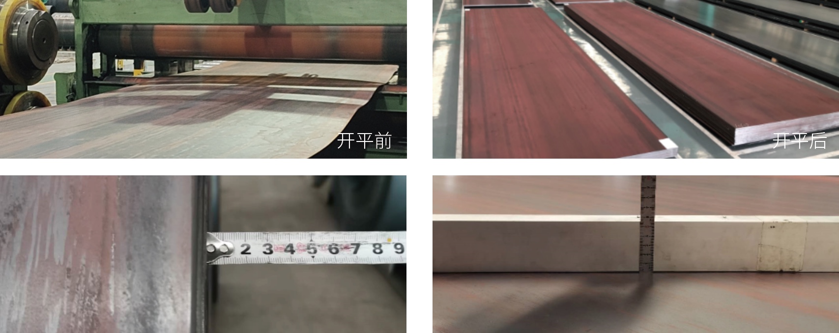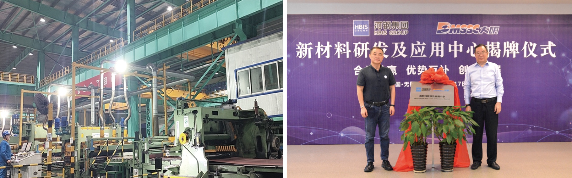 2020年9月,河鋼集團(tuán)與大明集團(tuán)聯(lián)合成立“新材料研發(fā)及應(yīng)用中心”,《熱軋免調(diào)質(zhì)耐磨鋼的推廣及應(yīng)用》已作為研發(fā)中心成立后的頭一個項(xiàng)目展開工作。從2006年起,大明國際從歐美引進(jìn)FIMI、NOVA、VIGANO等世界尖的高強(qiáng)和超高強(qiáng)鋼開平生產(chǎn)線。該系列生產(chǎn)線擁有多個輥包,可以進(jìn)行初、粗、精三個道次聯(lián)動矯直,能夠?qū)η?qiáng)度在1300Mpa的產(chǎn)品進(jìn)行在線矯直、開平,充分釋放應(yīng)力。同時,通過對加工過程鋼板表面溫度變化與參數(shù)調(diào)整進(jìn)行有機(jī)結(jié)合,終成品率由原先的60%提升到了90%以上,有效解決了免調(diào)質(zhì)耐磨鋼的加工問題。